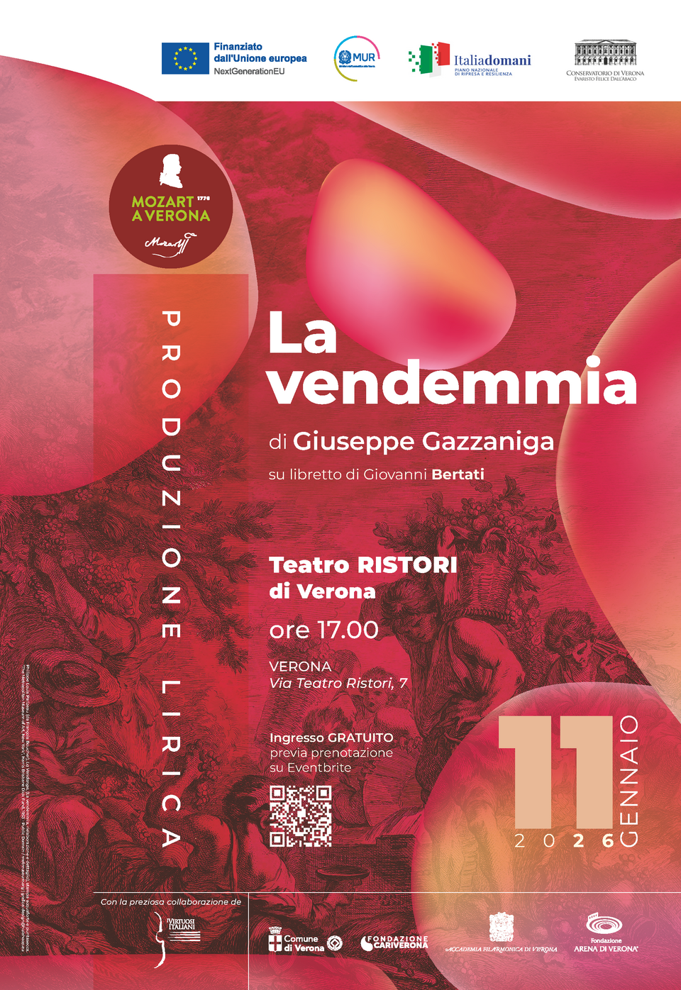 A major success of late eighteenth-century musical theatre returns to the stage after more than two centuries. On Sunday, 11 January 2026 at 5:00 PM, Teatro Ristori in Verona will host La Vendemmia, a dramma giocoso in two acts by Giuseppe Gazzaniga on a libretto by Giovanni Bertati, in a new production presented by the Verona Conservatory.